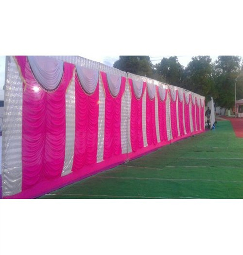 The wedding sidewall stood tall and proud, draped in layers of rich fabric that whispered tales of love and commitment. It encircled the sacred space like a guardian, its billowing folds creating a cocoon of intimacy and solemnity amidst the bustling world outside.