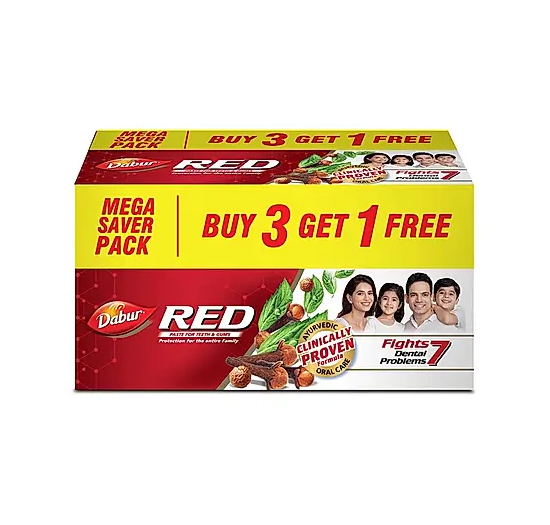 Dabur Red Paste is an unmistakable name when it comes to holistic Ayurvedic oral care. It is India's No.1 Ayurvedic Fluoride Free Paste and carries a unique blend of traditional Indian medicine and modern pharmaceutical technology, taking the best from both worlds , it provides complete protection from 7 Dental problems :cavities, gingivitis, plaque, toothache, bad breath, yellow teeth, plus weak teeth and gums.